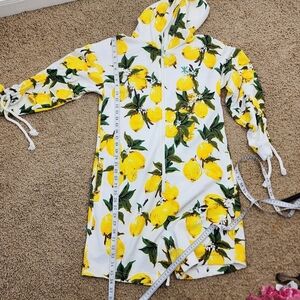 Onepiece Lemon Print Women's Jumpsuit Shorts Hooded Sipper Onesie Size Medium