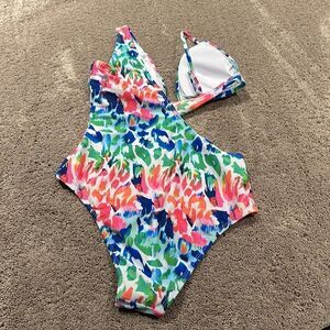 One piece swimsuit with cutout!! On trend for season! Size large !