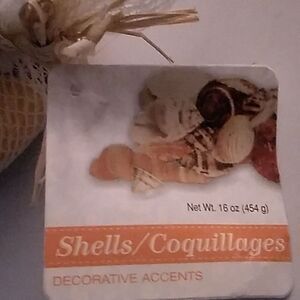 One pound of seashells in a netted bag.