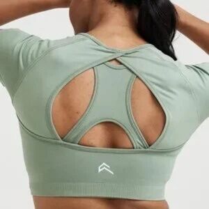 Oner Active Effortless Seamless Short Sleeve Crop Top in Sage Size Medium