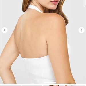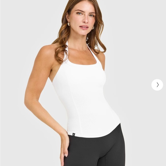 Oner Mellow Rib Halter Neck Vest with Built in Bra Tank in White
