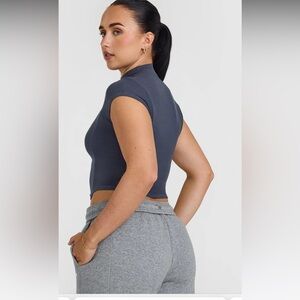 We’re adding to our Mellow family with our Mellow Rib Mid Mock Neck T-Shirt. It has a slightly cropped length and curved hem, meaning it sits just above your bottoms to show off your core. It’s a super-flattering, layering piece.