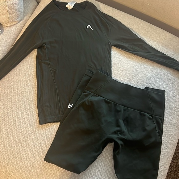 Khaki color, top size small, leggings size medium. Good used condition. Offers welcome