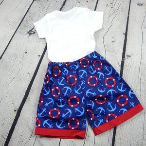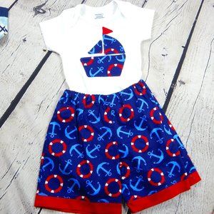 Nice Onesie Short sleeve (Gerber) with Hand made Shorts and Design (boat) sew it to the onesie From a home and pet free home Feel free to contact me for further questions