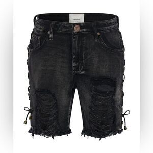 Oneteaspoon Stevie Boyfriend Jeans Shorts in black with ties on side 24 NWT