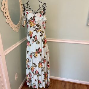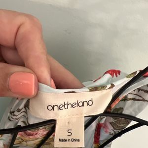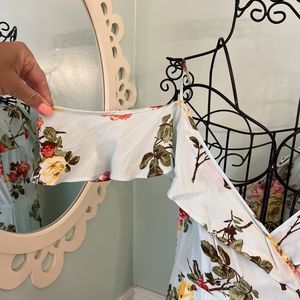 Onetheland Cottagecore Feminine Mint Green Gloral Dress Cold Shoulder Prairie S