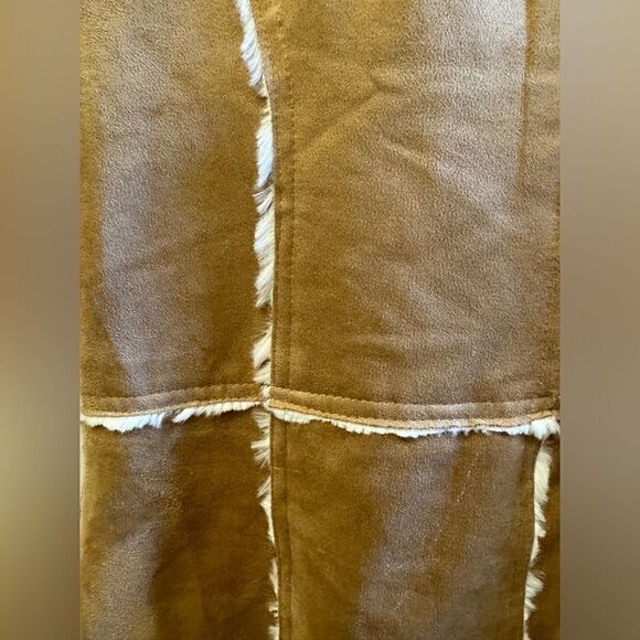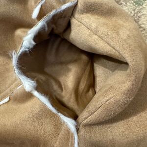 Onetheland Faux suede camel waterfall vest with white faux fur lining NWOT M