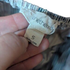 Onetheland Stripe Boho Shorts Romper One Piece Small Off Shoulder Boho Bell Sleeves Pom Trim