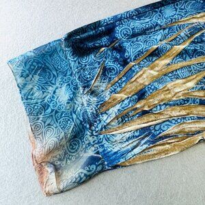 Oneworld Burnout Velvet Tunic Top Size XL Half Sleeve Tie Front