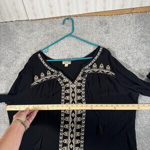 Oneworld Peasant Tunic Top 3XL Gold Embroidered Boho Hippie Artsy Festival Flowy