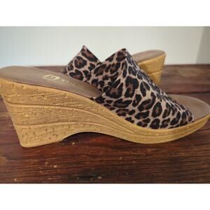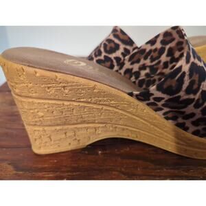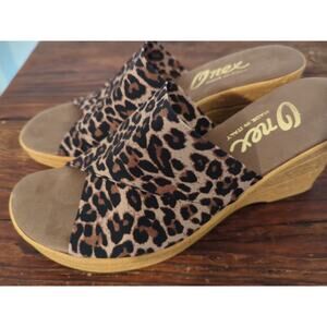 Onex Christina Cork Wedge Sandal Leopard Print Women’s 41 US 8.5 Made In Italy