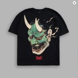 Keywords: Japanese Oni, Graphic Tee, Streetwear, Oversized, Anime, Mask, Mythology, Darkwear, Gothic, Graphic Print, Short Sleeve, Casual, Fashion Tee
