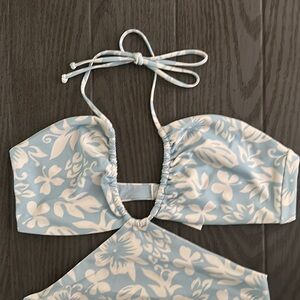 Super cute bandeau swimsuit! Beautiful blue tropical print .