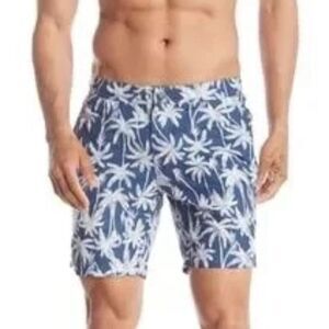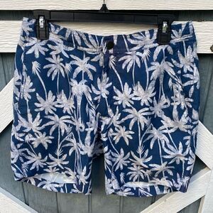 Onia Calder Blue & White Palm Tree Print Swim Trunks. Size Small (30) EUC!