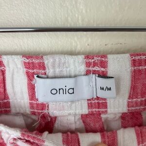 Onia Ella Linen Cotton Blend Cuffed Striped Pants Red & White Women’s Sz Medium