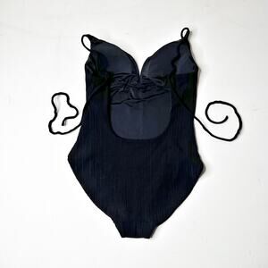 Onia Gloria Black Ribbed Textured One-Piece Swimsuit size Large