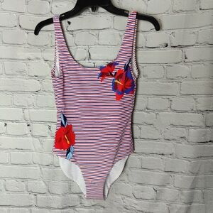 Onia Kelly One Piece Hibiscus Illusion Swimsuit Large Red White Blue NWT $195
