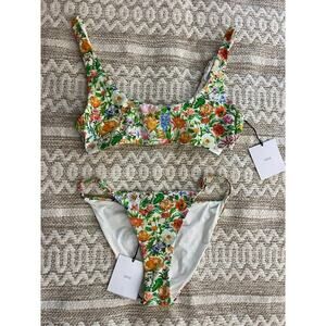 Onia L Swimsuit Bikini Set Spring Floral Field Scoop Top Low Rise Bottoms NEW