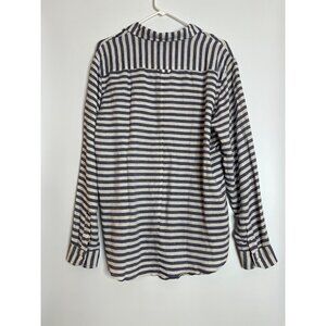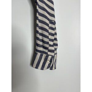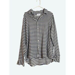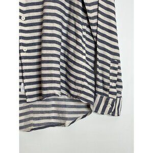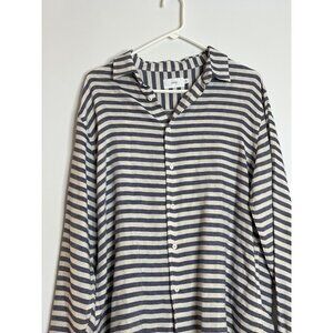 Onia Linen Blend Button Down High Low Hem Gray White Shirt Size Large