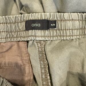 Onia Linen Blend Cargo Shorts Olive Green Elastic Drawstring Waist Size Medium