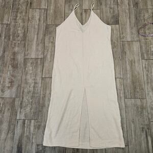 Onia Linen Blend Slip Dress Womens Size L Beige Midi Minimalist Summer Resort