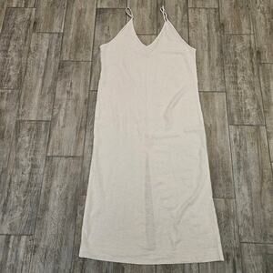 Onia Linen Blend Slip Dress Womens Size L Beige Midi Minimalist Summer