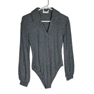 Onia Long Sleeve Polo Bodysuit Women's Small V-Neck Gray