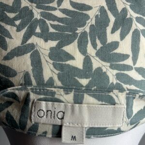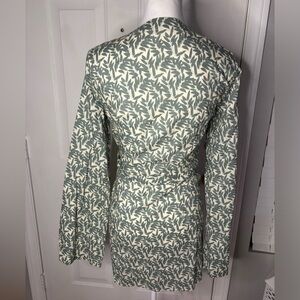 Onia | NWT medium | linen blend true wrap mini dress in green leaf on ecru