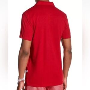 Onia Polo Shirt Mens Red Shaun Dark Rose Linen Blend Preppy Beachy Boating C29