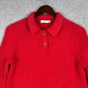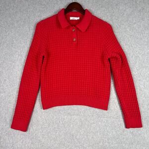 Onia Red Macro Waffle 100% Cotton Long Sleeve Polo Sweater Size Medium
