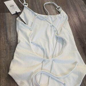 Lined white swimsuit Tie back detail