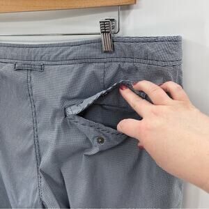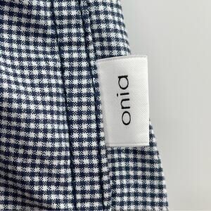 Onia The Calder Preppy Blue White Micro Gingham Flat Front Swim Shorts 38