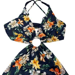Onia Tropical Bloom O-Ring One Piece Cut Out Swimsuit Deep Navy Size M, NWT