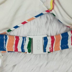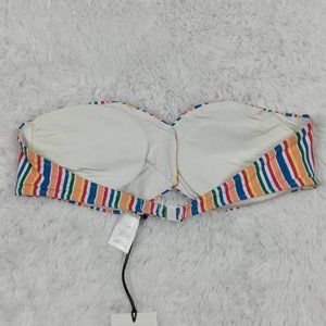 Onia Womens Bandeau Swimsuit Top Multicolor Orange Stripe Removeable Pads L New