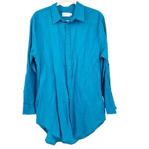 Onia Womens Coastal Beachy Linen Blend Oversized Marie Tunic Shirt Size S Aqua