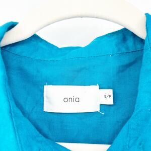 Onia Womens Coastal Beachy Linen Blend Oversized Marie Tunic Shirt in Aqua Blue. Size small.