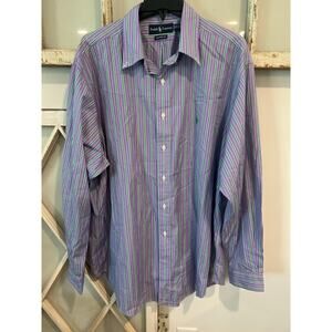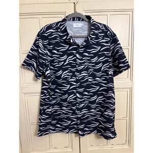 Onia size large navy blue and white short sleeve button down shirt in excellent condition. No signs of wear. Measures 23” from armpit to armpit and 28” long.