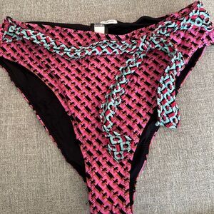 Top is a bit worn but bottom worn once! Bottom is slightly high waisted. Both medium