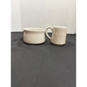 Onion River Pottery Vermont Mug and Bowl Set Speckled Beige Bear Applique