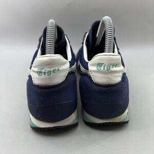 Color: Navy blue with white Tiger stripes and mint/teal midsole accents