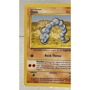 This Onix Base Set 56/102 Pokémon WOTC 1999 Card is a vintage piece from the Pokémon TCG game. It features the character Onix and has a rarity of uncommon. The card has been lightly played and is in excellent condition.