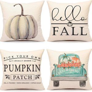 (Only Covers) Set of 4 Thanksgiving White Pumpkin Pillow Covers, 18 x 18 inches