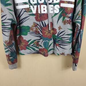 Gently used. Size small. Long sleeve gray sweatshirt. Floral graphic with only good vibes text. Hooded.