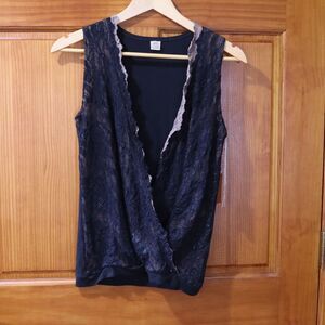 Only Hearts NYC Helena Stuart Black Lace Sleeveless Blouse Deep V Medium NWT