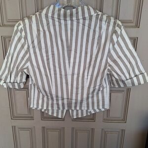 Only Love Collection Jacket SzXS/S Short Sleeves Stripes White/Gray Cropped NWT
