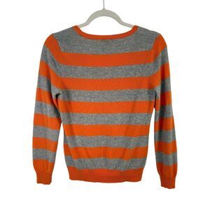 Only Mine Orange Grey Striped 100% Cashmere Sweater Capsole Preppy Womens Large