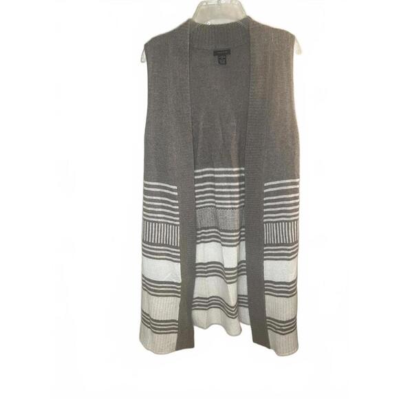 Only Mine Taupe White Striped 100% Cashmere Open Front Cardigan Vest Size Small
