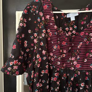 Only Necessities Dress Womens Size 3X Maxi Dress Black Floral Boho Short Sleeve