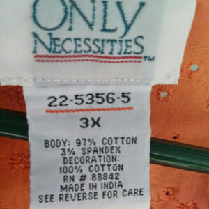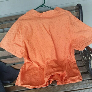This cheerful, bright, stretchy coral tunic length shirt with fun floral eyelets provide a fun attitude for your activities. Perfect to top off your jeans, slacks. Leggings or shorts! Dress it up or down.