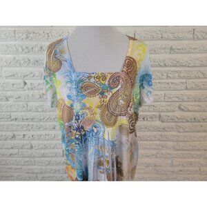 Only Nine Womens Top 2X Plus Tee Short Sleeve Polyester Laser Cut Blue PAI7E